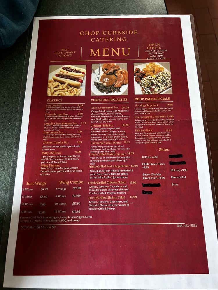 Introducing Chop Curbside Catering, a hidden gem located at 501 N Main St in Marion, SC. Specializing in American-style chicken wings and comforting southern food, this establishment is known for its warmth and hospitality. Customers rave about the welcoming atmosphere and the familial connection fostered by the owner and staff.